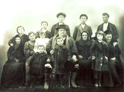 Año 1915. Mateo Brun Gastón, su mujer Bienvenida-Pilar Arqued Millas, su madre Josefa Gastón López, su hermana Orosia Brun Gastón, su suegra Joaquina Millas Asso y sus hijos Juan-Ramón, Jenaro, Mateo-Andrés, Josefina, Bienvenida-Pilar, Orosia, Pascual, Joaquín y Águeda Brun Arqued. Foto: Colección particular de Ramón F. Ortiz Abril.